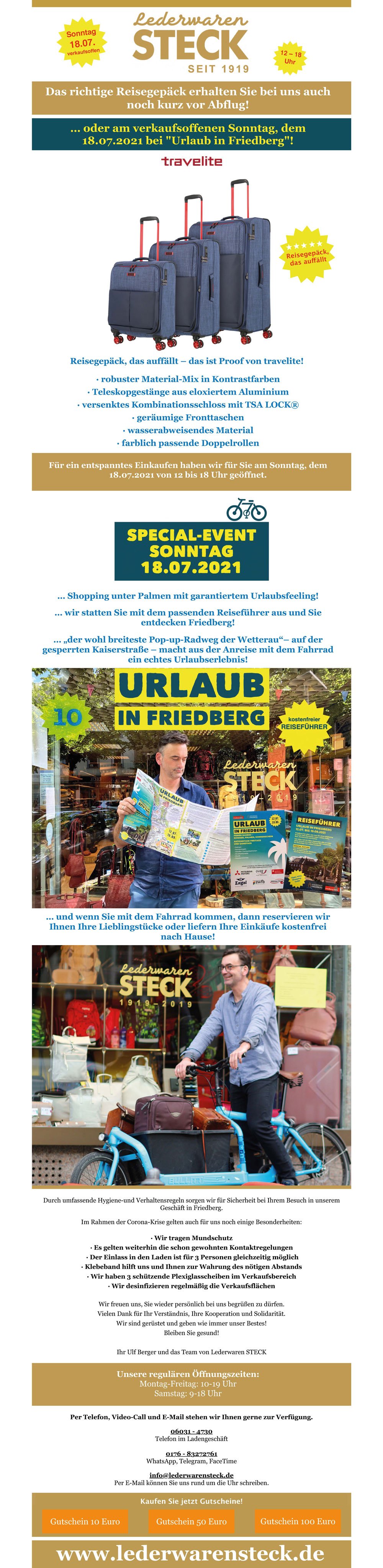 können Sie sich ganz entspannt und an diesem Tag auch ganz spielerisch über unsere Reisegepäckangebote informieren. Weitere Informationen zum Programm von „FRIEDBERG SPIELT!“ gibt’s unter
