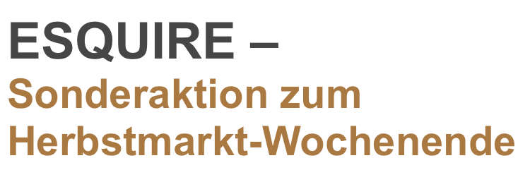 Das kommende HERBSTMARKT- Wochenende (18.09-20.09.2015) nehmen wir zum Anlass und stellen die Firma ESQUIRE ausgiebig in unserem Ladengeschäft vor.