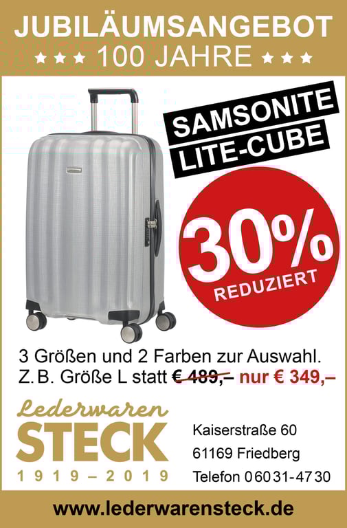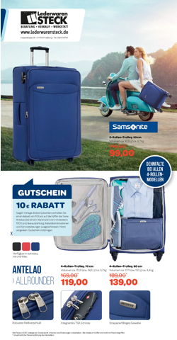 Zum kommenden Wochenende bieten wir gerade verschiedene Modelle der Firma SAMSONITE sehr preiswert an (-30%, solange der Vorrat reicht).