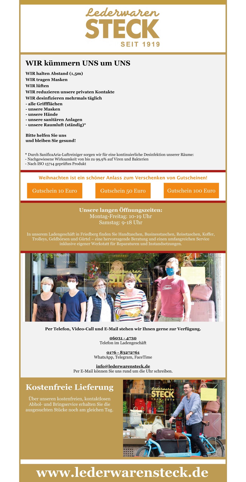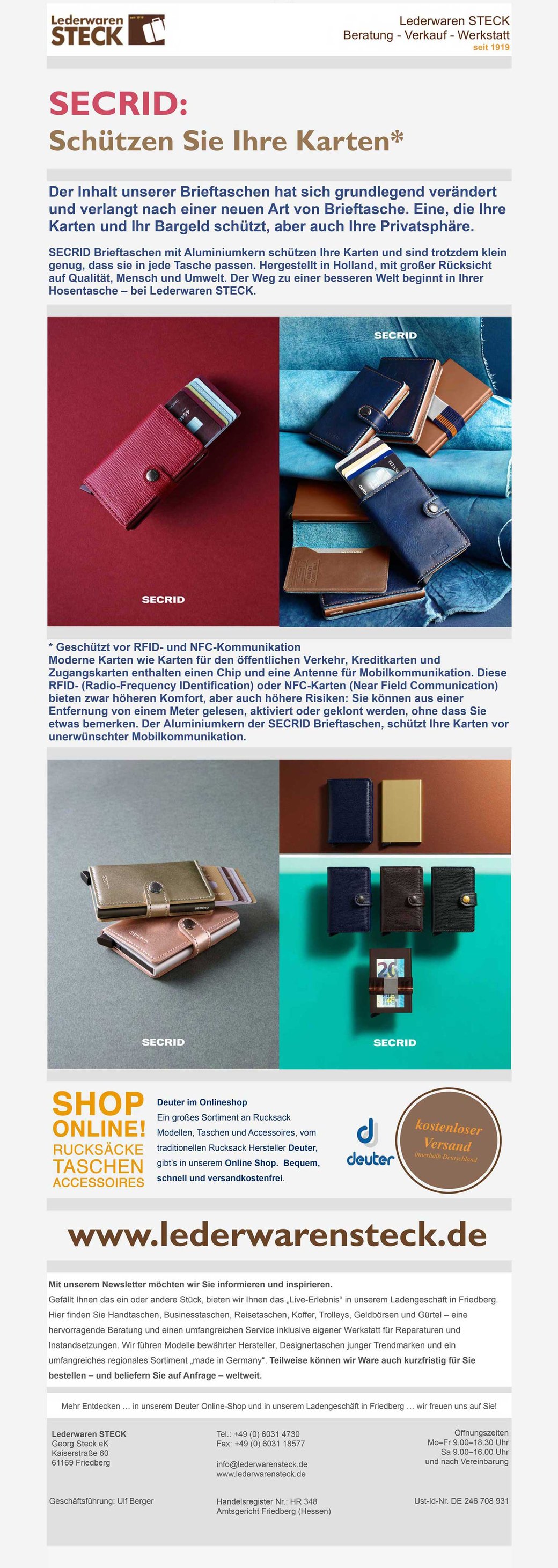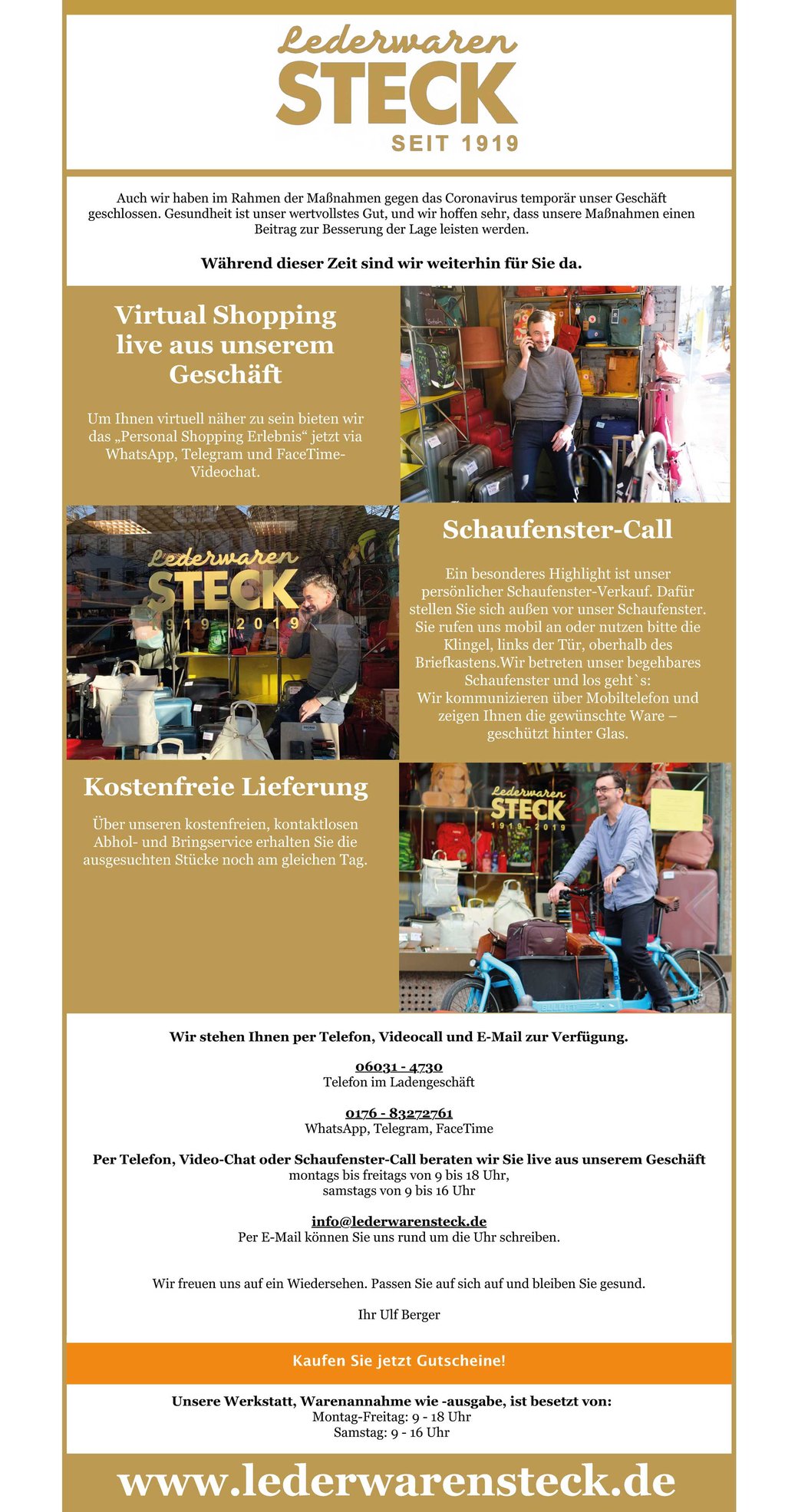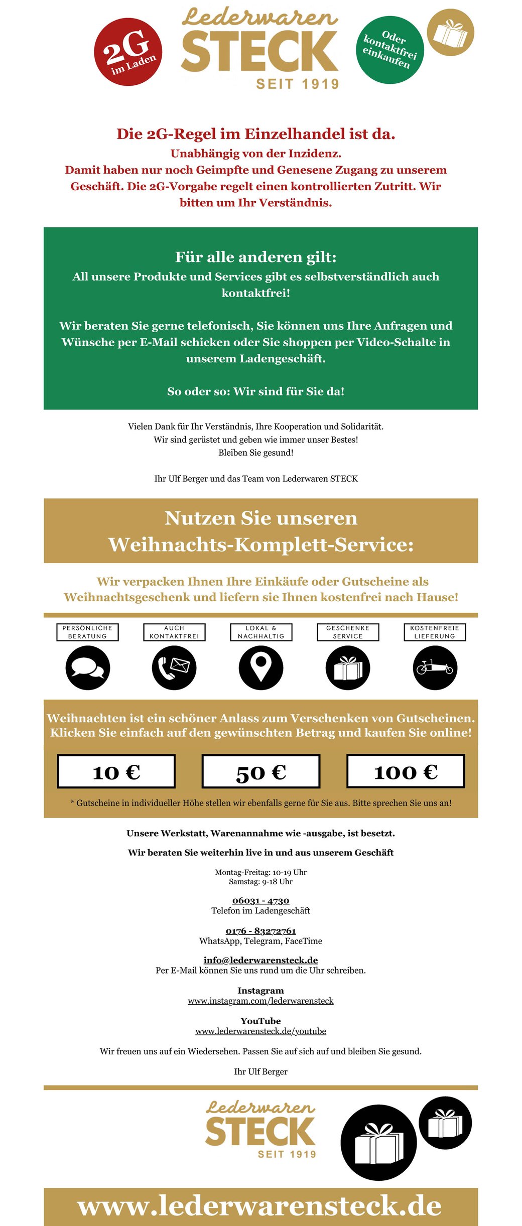 Bei Lederwaren STECK im Ladengeschäft und in unserem großen Online-Shop – vom Fachhändler mit Tradition.