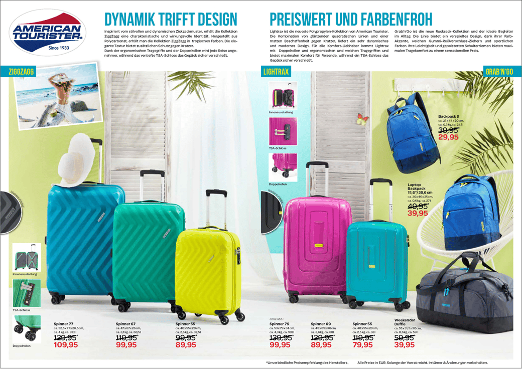Reisegepäck von Samsonite, American Tourister, March, Rimowa oder Deuter stellen wir Ihnen gerne vor.