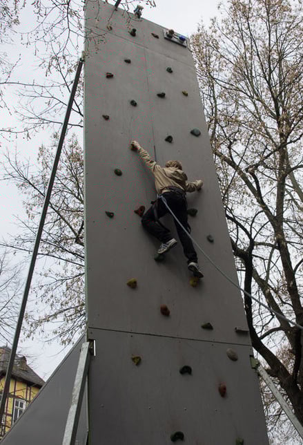 Wie auch in den letzten Jahren zum Friedberger Frühlingsmarkt steht am verkaufsoffenen Sonntag vor dem Ladengeschäft, Kaiserstraße 60, ab 12:00 Uhr die 8m hohe Deuter-Kletterwand