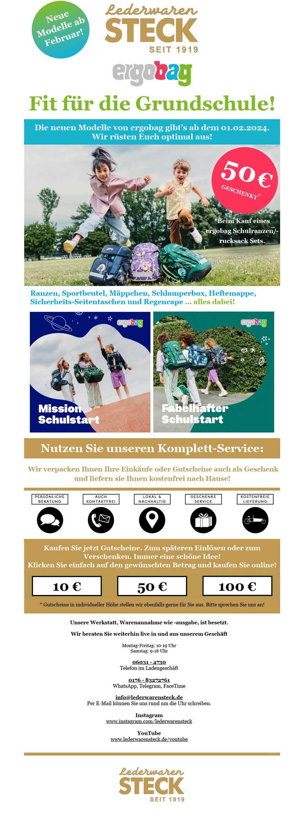 Dies nehmen wir zum Anlass die DEUTER- Saison zu eröffnen. DEUTER, der Augsburger Rucksack-Spezialist und Lederwaren Steck stellen an diesem Wochenende die neuesten Mode-Trends von Schul,